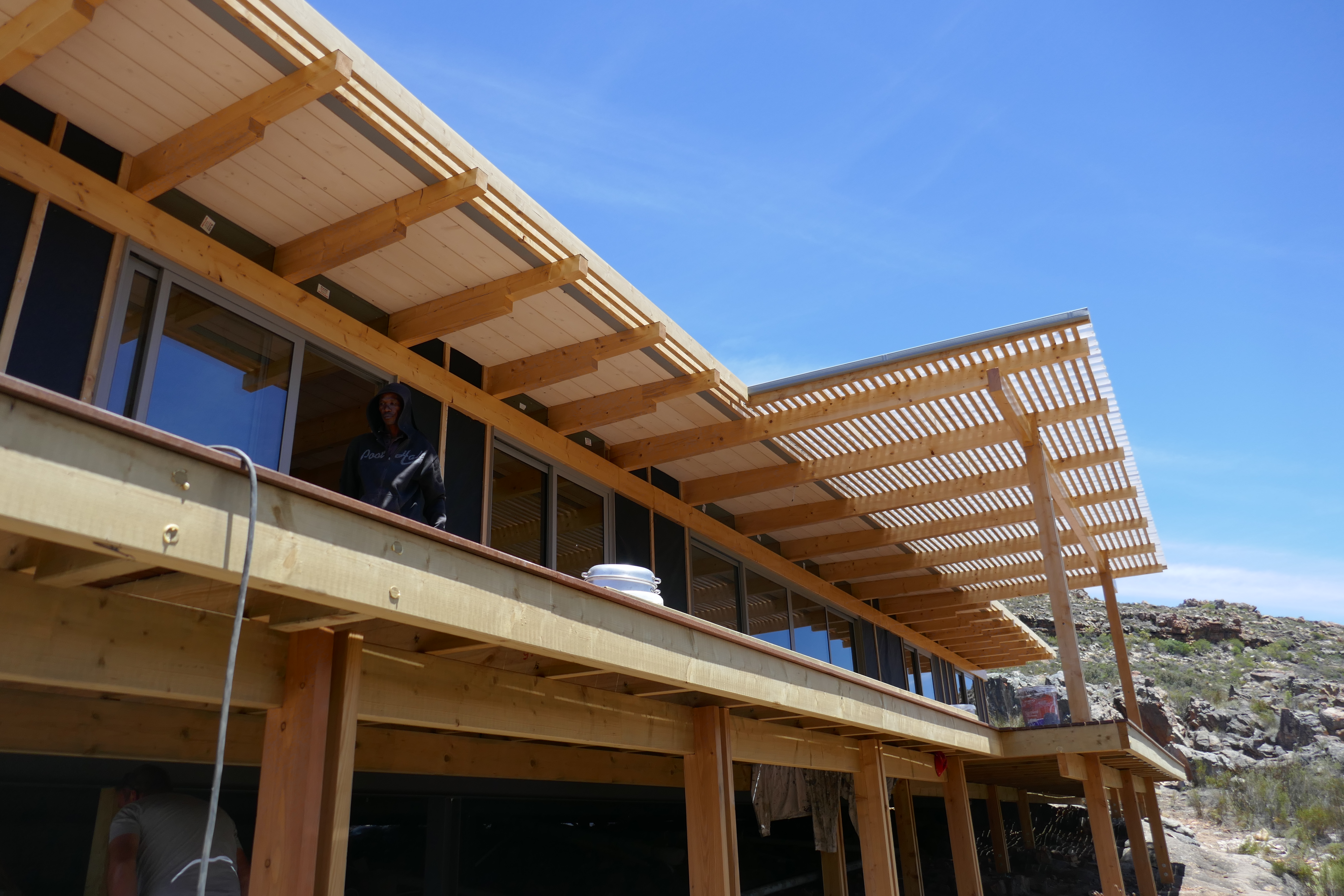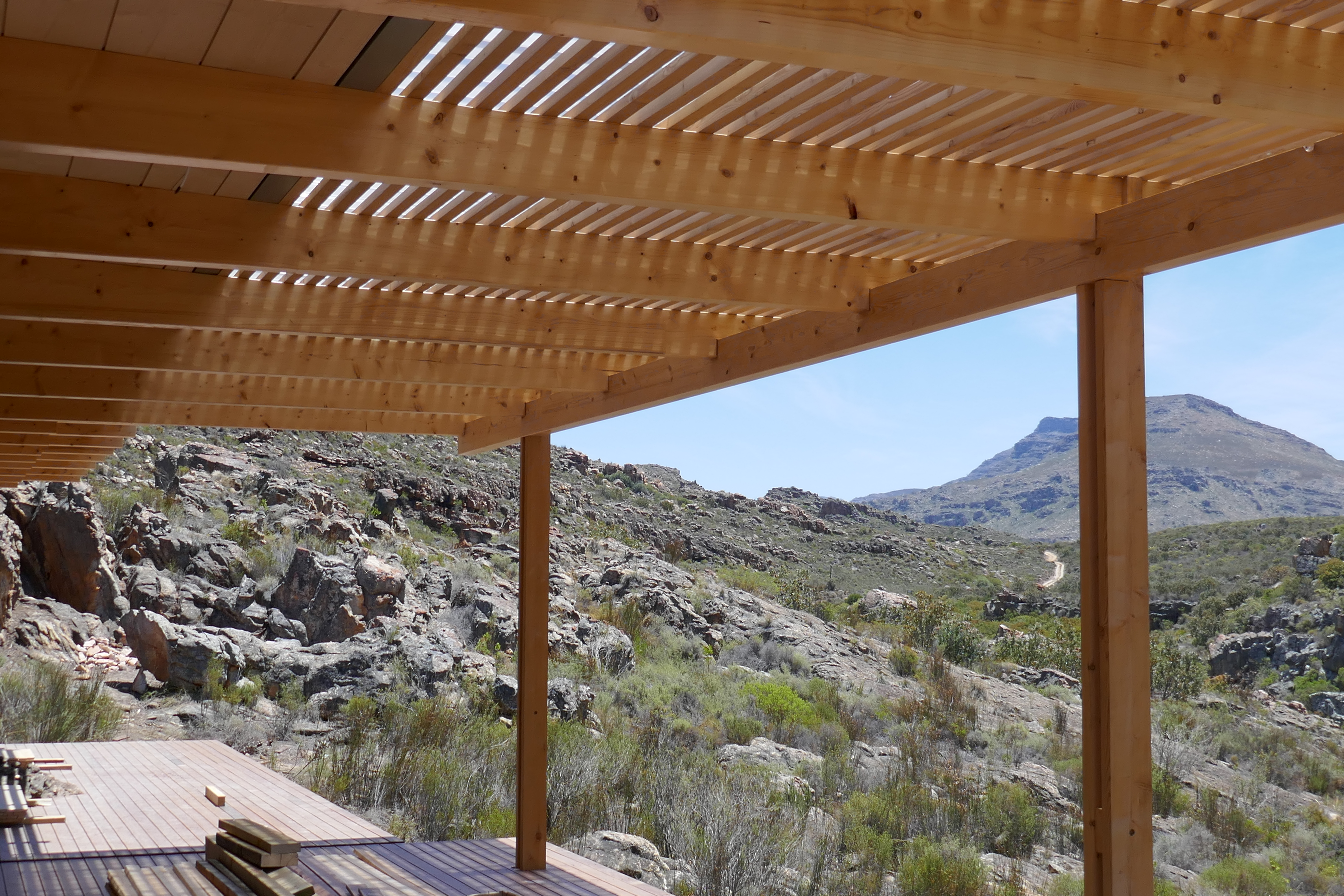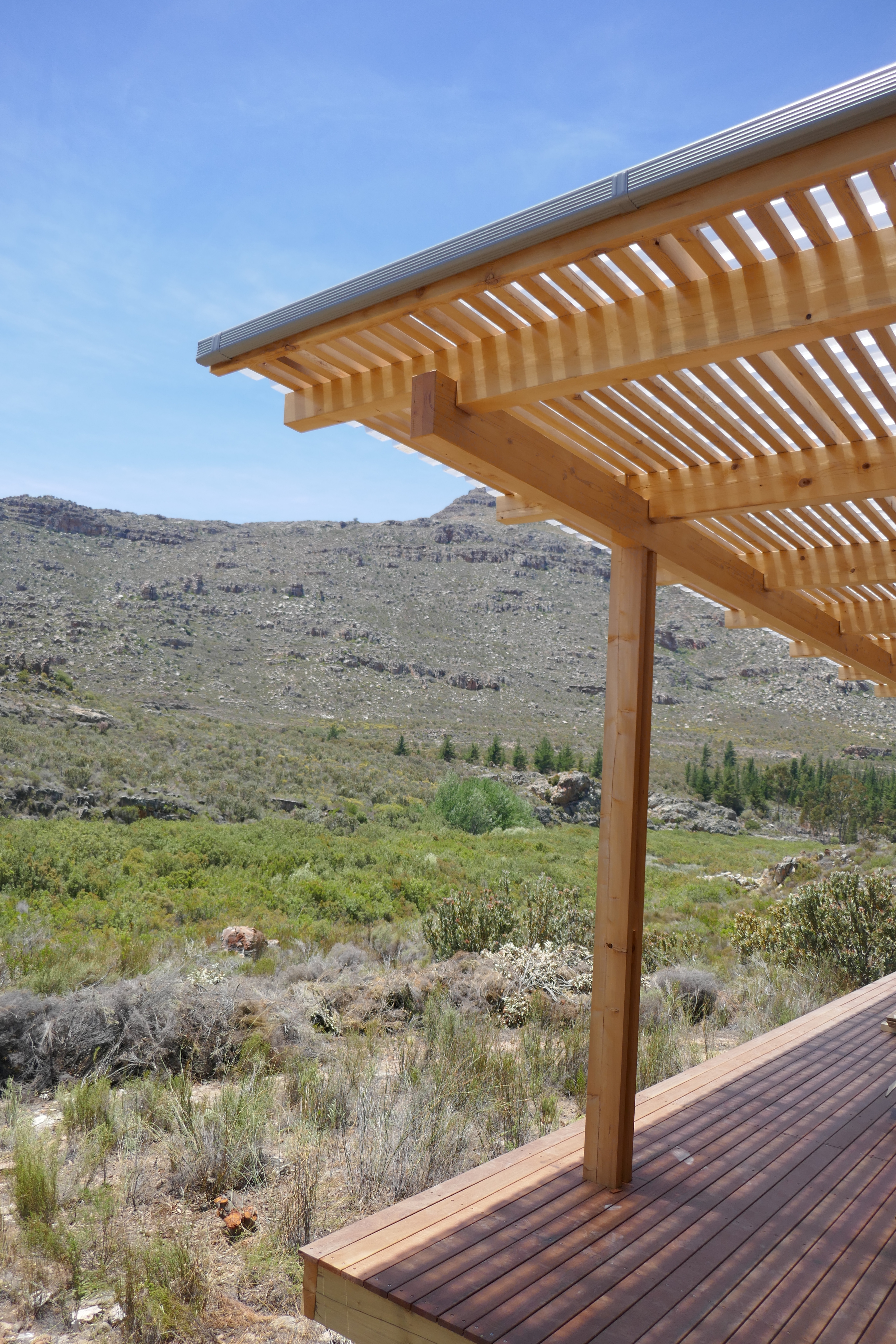 Mountain House Design OverviewSpecification Brochure Galleries Bedrooms : 3 Bathrooms : 2 + Guest WC Living Space : 140sqm foot print (21.6m long) Extras : 104 sqm solid wood decking in front on substructure (optional) Penthouse Apartments Cradle of Humankind