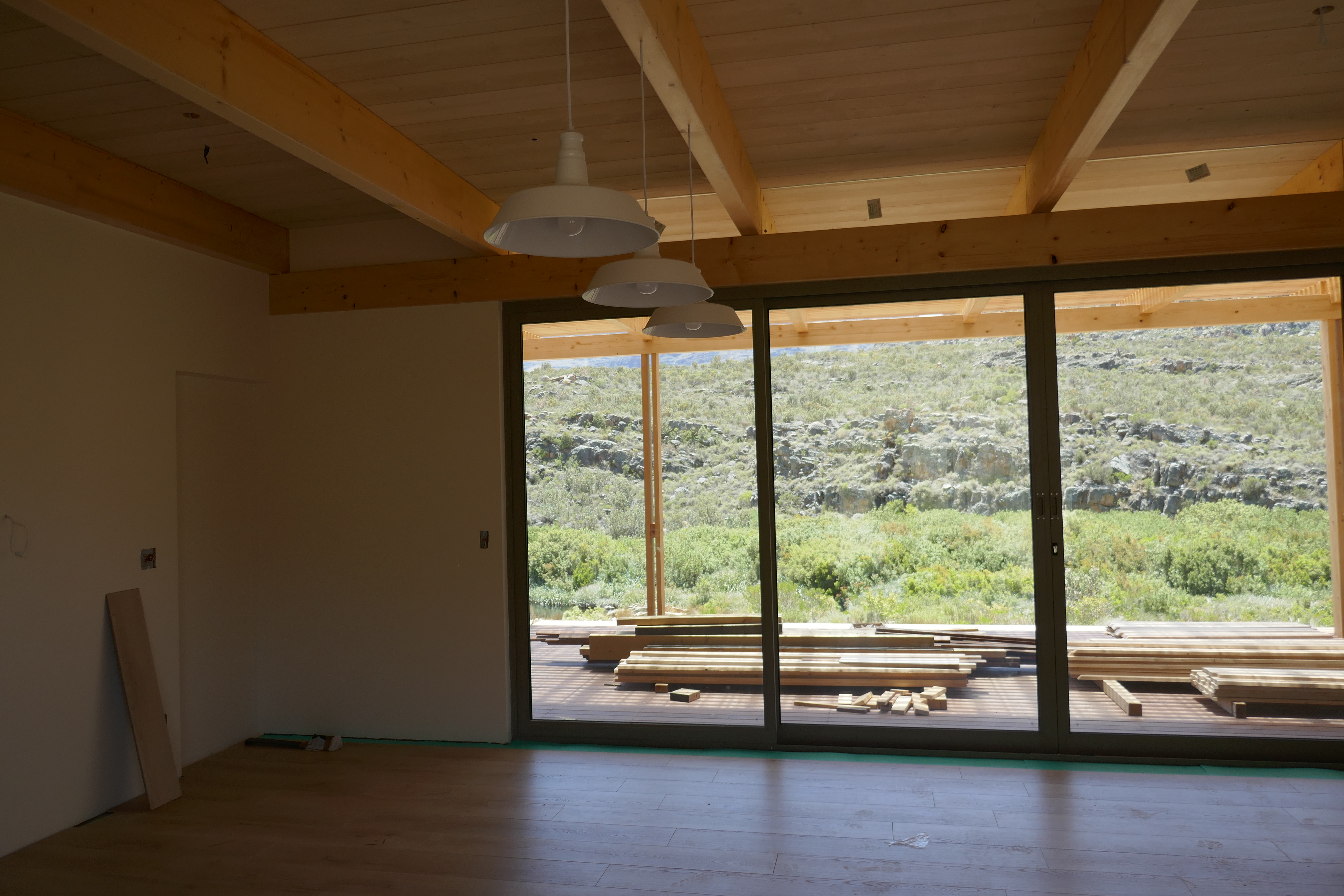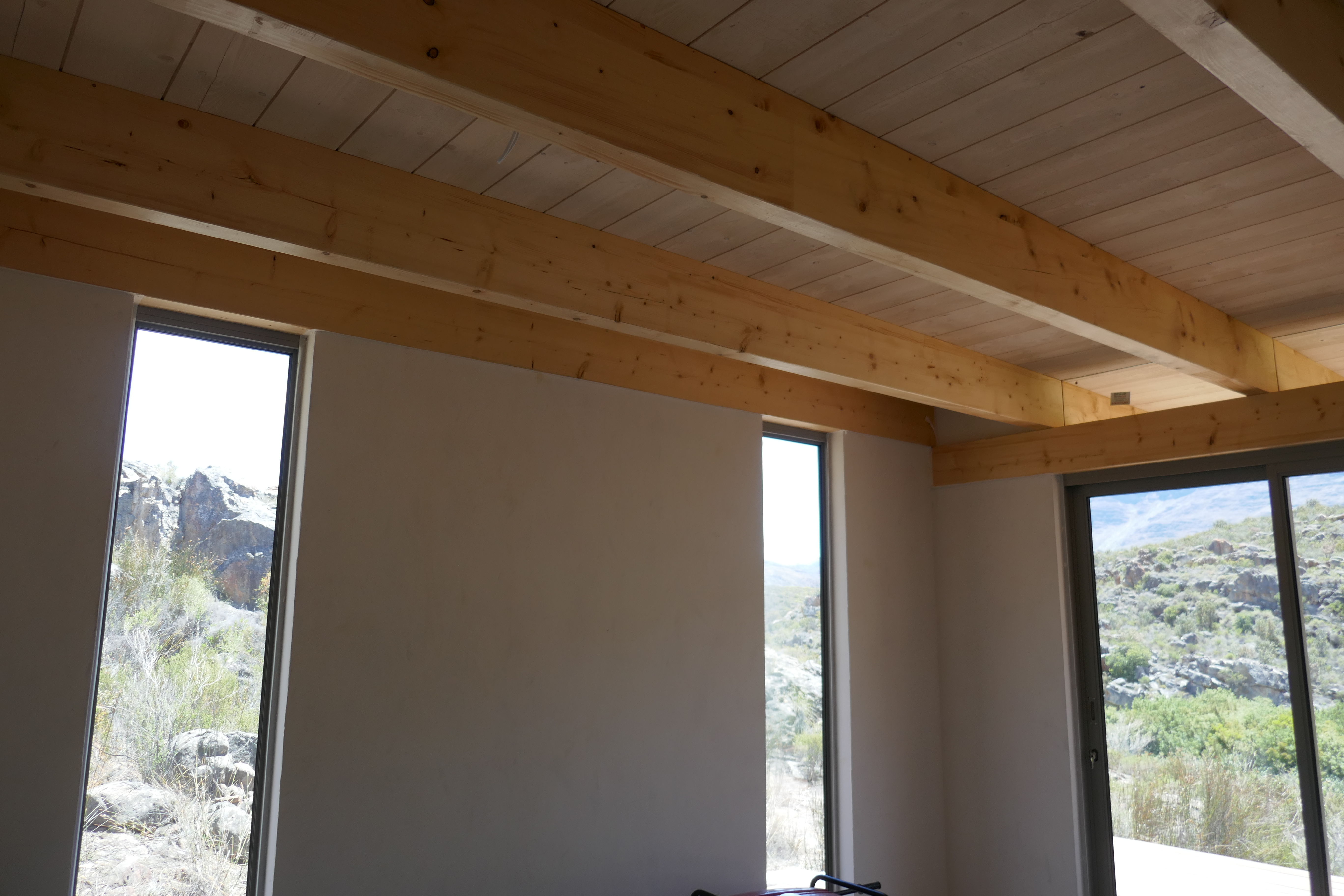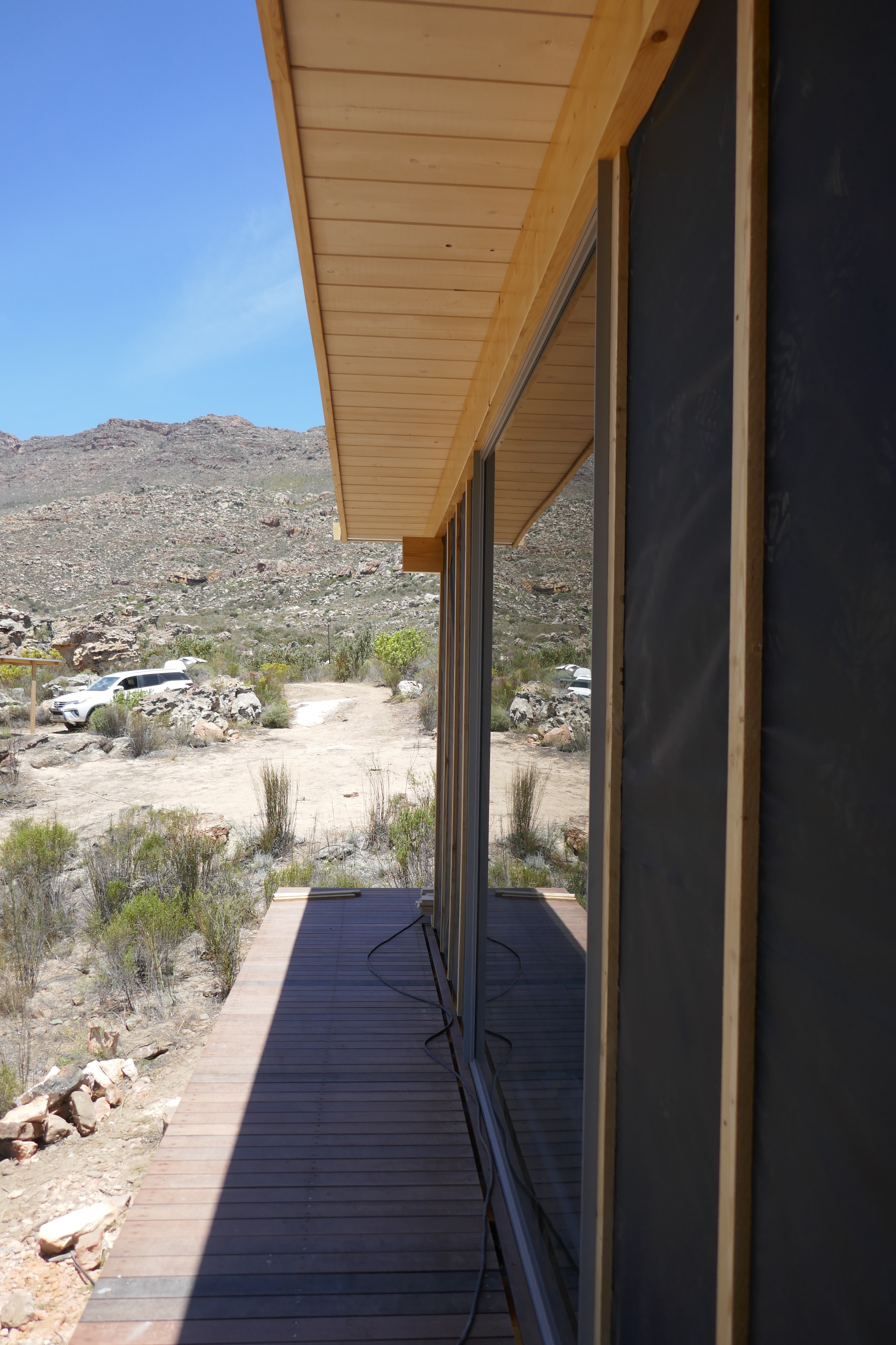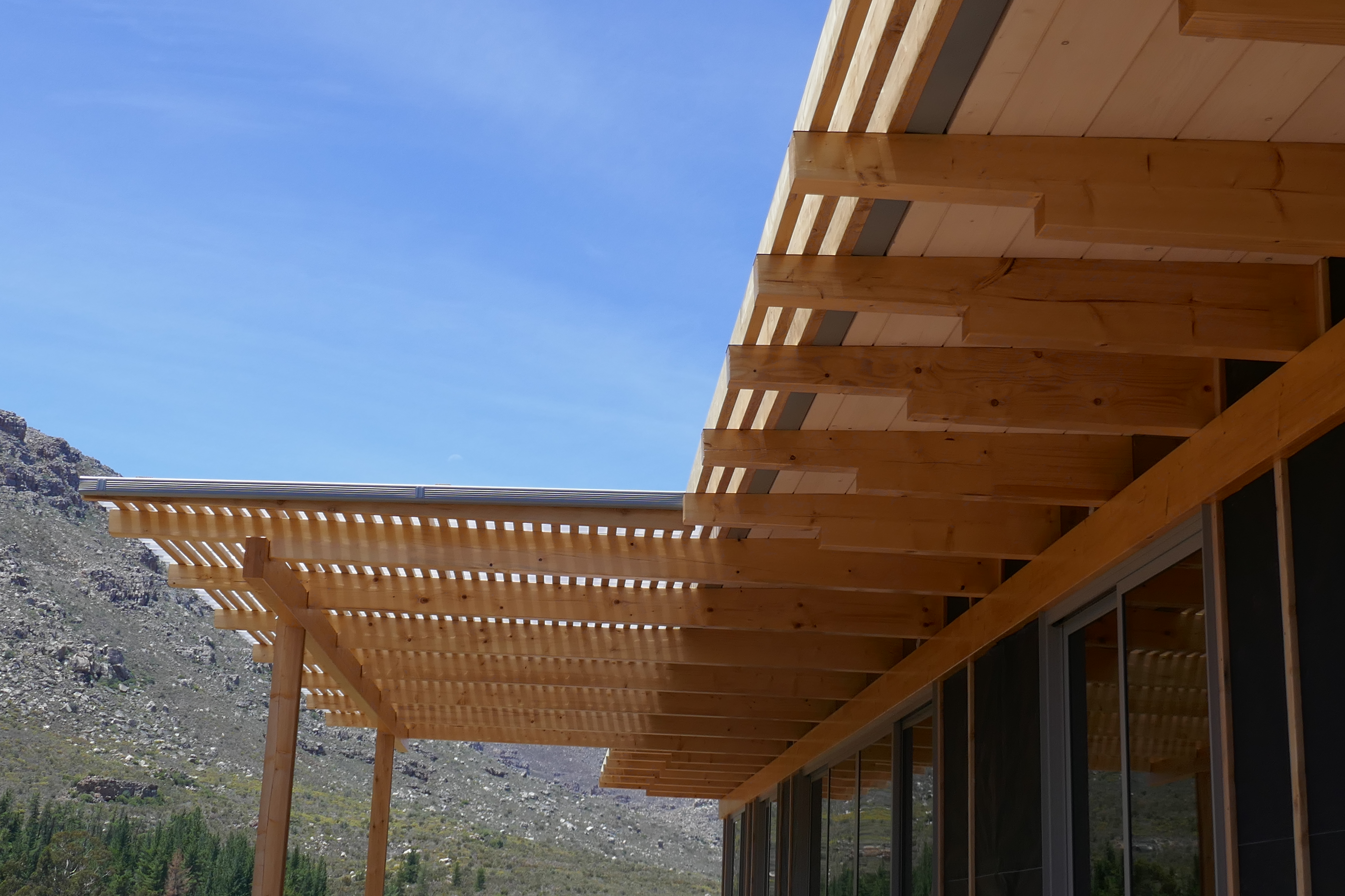 Mountain House Design OverviewSpecification Brochure Galleries Bedrooms : 3 Bathrooms : 2 + Guest WC Living Space : 140sqm foot print (21.6m long) Extras : 104 sqm solid wood decking in front on substructure (optional) Penthouse Apartments Cradle of Humankind